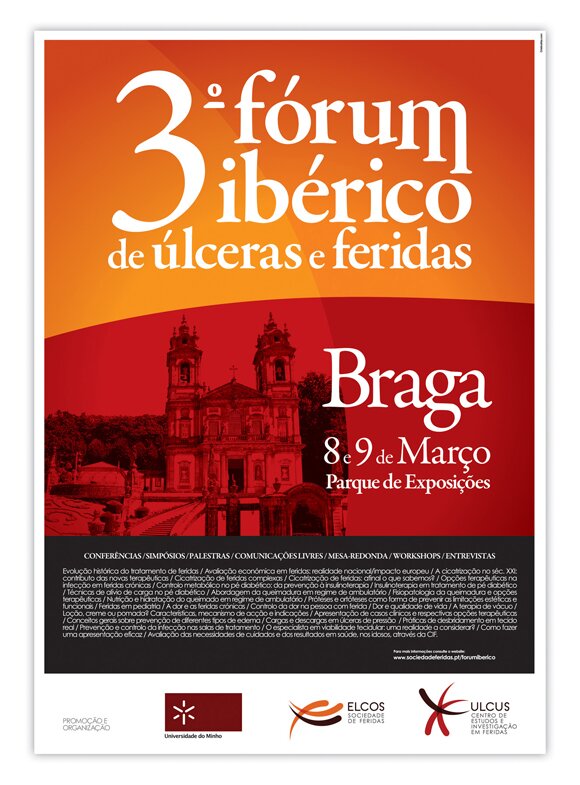 Dias 8 e 9 de Março realiza-se, no Parque de Exposições de Braga, o 3º Fórum Ibérico de Úlceras e Feridas, organizado pela Universidade do Minho, ELCOS - Sociedade de Feridas e ULCUS - Centro de Estudos e Investigação em Feridas. «A História no Tratamento das Feridas», «Papel da Escleroterapia com Espuma no Tratamento da Úlcera da Perna», «Nutrição e Hidratação do Queimado» são alguns dos temas do programa.
